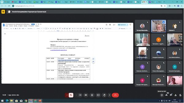 Активна дискусія серед учасників семінару була спричинена питанням формулювання та впровадження в освітню програму додаткових професійних компетенцій і програмних результатів навчання, які підкреслюють її унікальність.