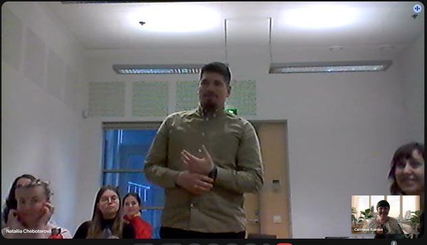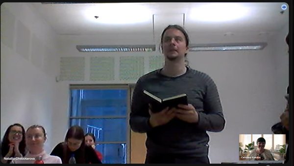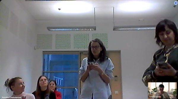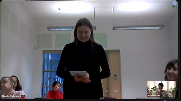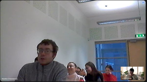 Наприкінці зустрічі естонські студенти висловили позитивні враження від прослуханої лекції та поставили запитання. Наприклад, студент Валері сказав, що має українське коріння, у його родині залишився спогад про одну з бабусь на ім’я Єля. Чи означає це, що її повне найменування Олена. С.Л.Ковтюх відповіла ствердно, ще й надіслала відповідні світлини зі «Словника українських імен» І. І. Трійняка. Мабуть, усі здогадалися, що спровокувала це запитання розповідь про кропивницький проєкт «Баба Єлька», дві очільниці якого навчалися в нашому університеті – Світлана Листюк (кандидат педагогічних наук, ще й гризла граніт науки в Гарварді) та Інна Тільнова (кандидат філологічних наук, студентка й аспірантка С.Л.Ковтюх). Олексія зацікавив український слід у космонавтиці загалом та в американській астронавтиці зокрема, свій короткий виступ естонський юнак завершив словами «Слава Україні!». Катрена й Ірина натхненно описали той емоційний заряд, який вони отримали від лекції. У кінці рефлексій виступив другий Олексій, який зворушливо сказав, що українська мова – «дуже краща». Приємно, що молоді люди, які почали вчити нашу мову або з вересня, або щойно в другому семестрі, говорять старанно, вдумливо, майже без помилок, з мінімальним акцентом, і це естонці!