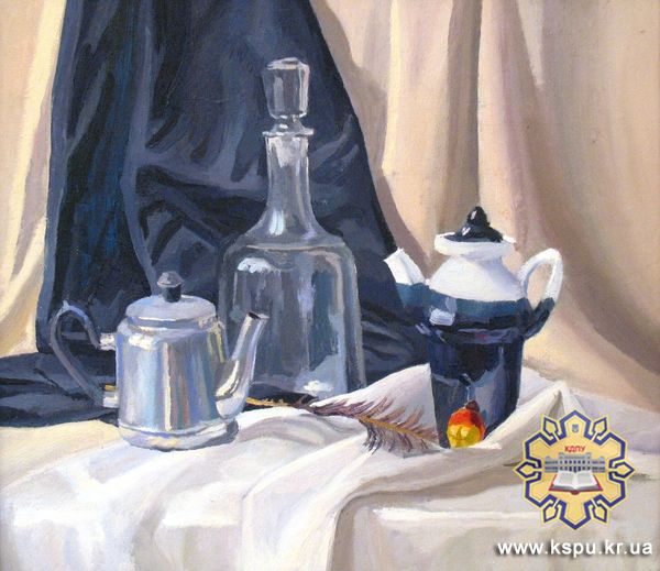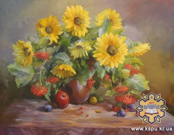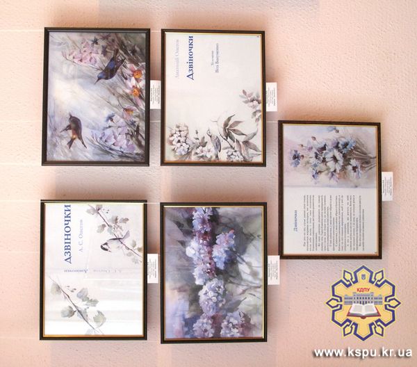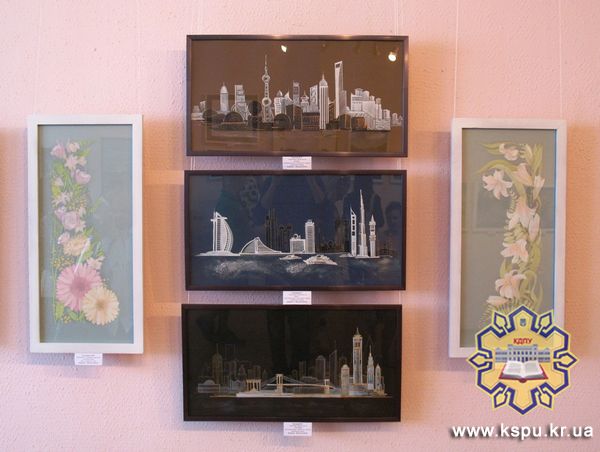 Серія робіт «Ліричні вірші» (туш, перо, акварель) Бакуменко В.В., «Мальовнича Україна» (вугілля, сангіна, крейда, білила, акварель) Гордій О.М., «Моє місто» (мішана техніка) Дуброви О.С., «Натюрморт з квітами» (полотно, олія) Гончаренко О.О. виконана під керівництвом Пунгіної О.А. - кандидата педагогічних наук, старшого викладача кафедри хореографічних дисциплін образотворчого мистецтва та дизайну.