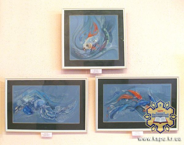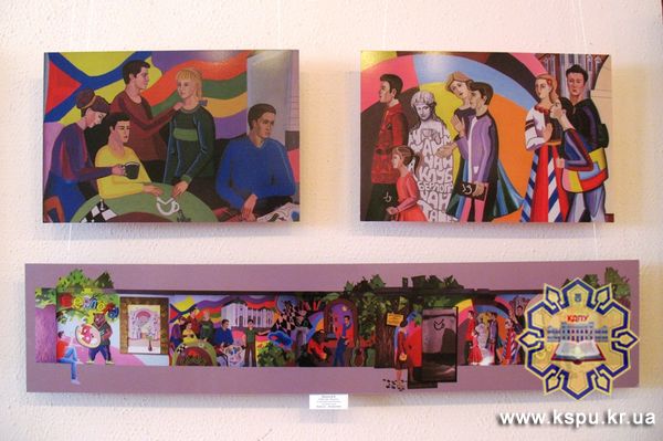 Продемонстрували свої творчі здібності й таланти Лелеко К.Д. - «Вітряки», «Берег річки» «Полудень» (полотно, олія), Дереза А.В. - «Вода», «Вогонь», «Земля», «Повітря» (акварель, туш, акрил, рапідограф) та Цуркан К.В. – тайм-клуб «Берлога» (монументальний живопис, планшет ескізу) під керівництвом Давидова В.М. - старшого викладача кафедри хореографічних дисциплін образотворчого мистецтва та дизайну.