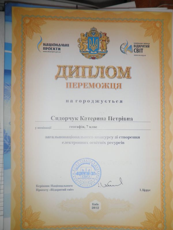 Випускниця природничо-географічного факультету КДПУ імені В. Винниченка (2009 рік), вчитель географії ЗОШ №30 м. Кіровограда Катерина Сидорчук стала переможницею в номінації «Географія» загальнонаціонального конкурсу зі створення електронних освітніх ресурсів «Відкритий світ», який проходив протягом січня-березня 2012 року у 704 школах України.