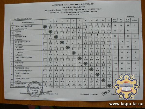 Команда «КДПУ – Кіровоград» – переможець клубного чемпіонату України серед команд Вищої ліги з настільного тенісу!