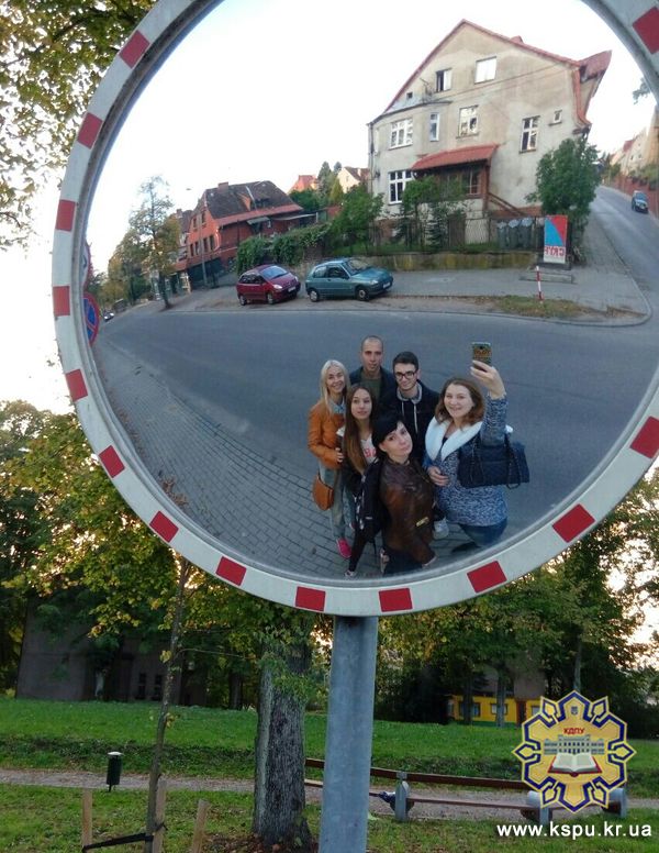 "Доброго дня! Ми студентки факультету іноземних мов і передаємо усім вітання із Польщі. Трохи більше тижня тому ми вперше поїхали за програмою обміну студентами до міста Слупськ, Польща, у Поморську академію. Це наш перший досвід навчання за кордоном і ми охоче поділимося своїми першими враженнями зі студентами та викладачами нашого університету.