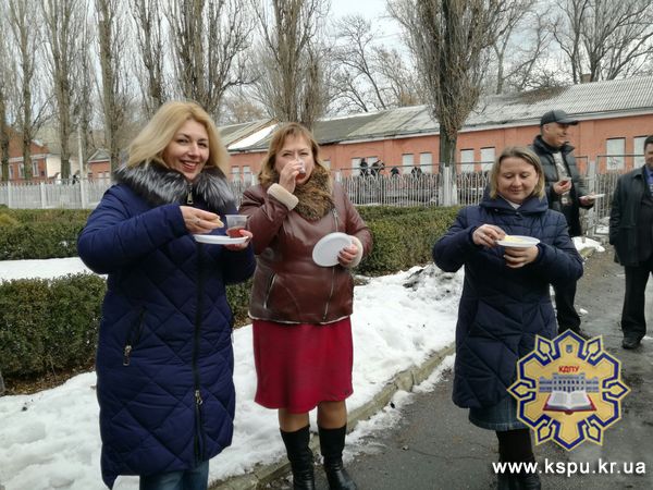 Щоб зробити таке свято, треба мати бажання. А якщо за діло взялась Світлана Володимирівна Проскурова – кандидат історичних наук, доцент, Заслужений працівник освіти України, то справа піде швидше. Тим паче, долучилися студенти 11 групи, які справно організували міні-концерт на імпровізованій сцені у внутрішньому дворику педагогічного університету імені Володимира Винниченка, а студенти 21 групи насмажили найсмачніших млинців. Подавали їх з медом, варенням та згущеним молоком.