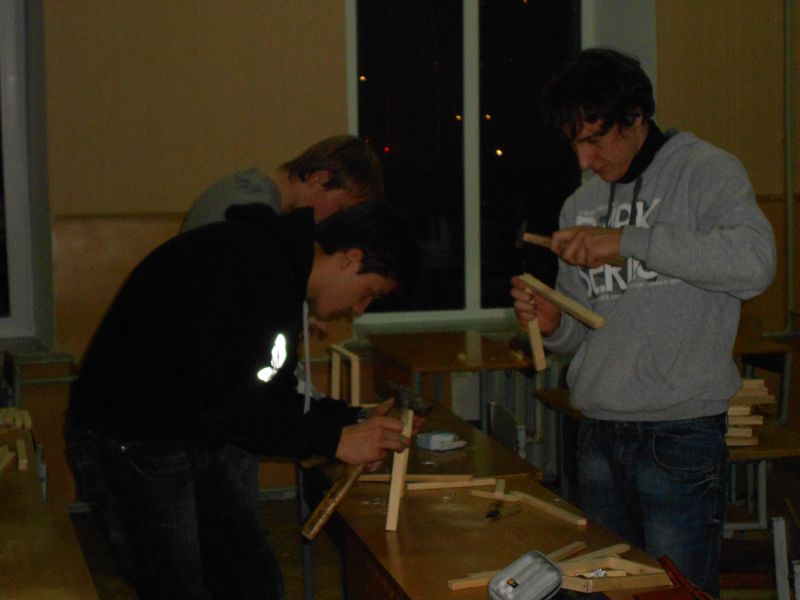 А от на наступному етапі проблеми таки виникли – прозаїчно не вистачало рамок, щоб розмістити усі зібрані шедеври на суд публіки. Тут в нашій історії з’являються кілька студентів спеціальності політологія, які під демократичним керівництвом організаторів стали до подолання цієї банальної але серйозної перешкоди. Залишивши позаду кілька десятків метрів використаного сукна, кілька вечорів, проведених в університеті та кілька прибитих молотком пальців, наші герої оминули й цю перепону.