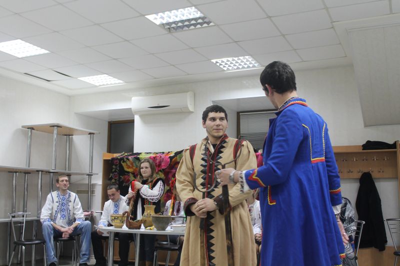 Всі дякували студентці другого курсу Савич Ксенії, яка спекла для нас чудову калиту. Калитинським був Саченко Євгеній, коцюбинським – Діденко Олександр, господинею –Гончаренко Анна. А сценарій підготувала і провела культорг Бабіна Єлизавета.
