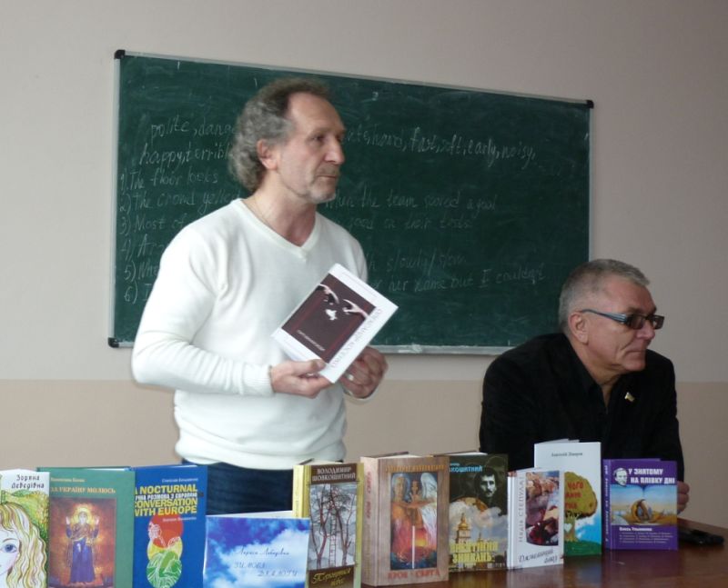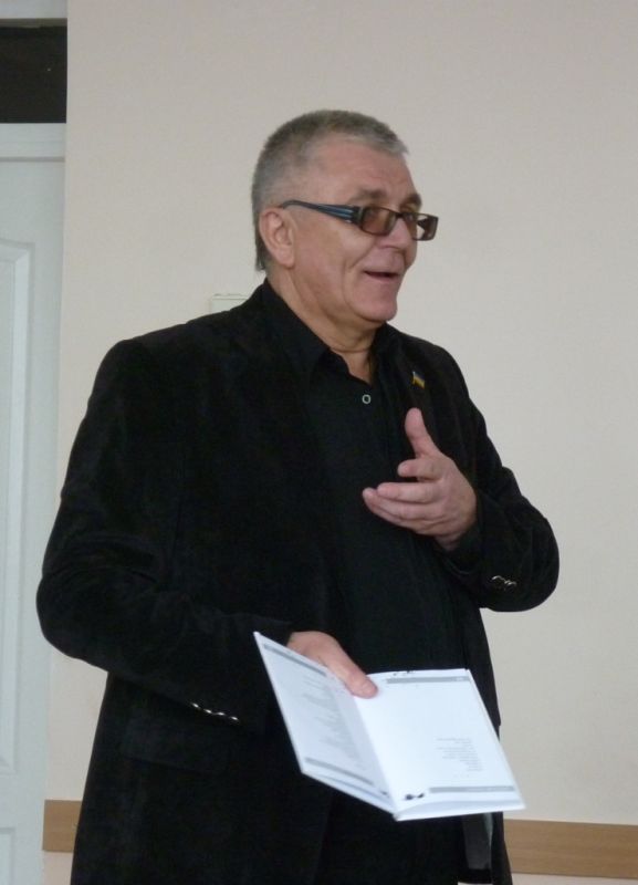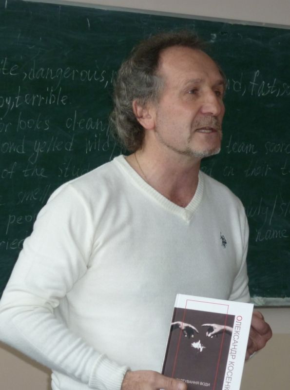 14 березня студенти-філологи КДПУ ім. В. Винниченка знову мали можливість насолодитися шматочком творчого пирога від відомого українського письменника, поета, публіциста, політичного та громадського діяча Володимира Федоровича Шовкошитного. Цього разу він прибув не сам, а з колегами та соратниками по творчій майстерні: кіровоградським поетом Олександром Косенком та письменницею й літературознавцем, кандидатом філологічних наук Ларисою Лебедівною. Перше слово взяв Олександр Косенко, з яким Володимир Федорович познайомився лише декілька місяців тому, але вже встиг видати книгу кіровоградця в київському видавництві «Український пріоритет», директором якого він є.