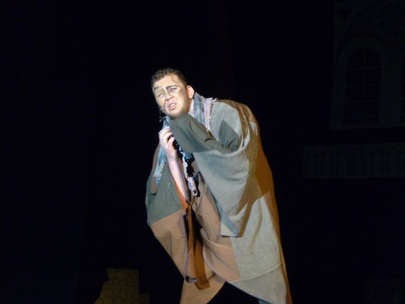 Переконливим на сцені постає образ Квазімодо. Його потворність контрастує із красенем Фебом, а також із внутрішньою душевною красою. Втім, чуттєвим він був не відразу. Його показано у розвитку – від здеградованого виродка до сердечного, людяного, чутливого героя, який гине від розпачу над тілом коханої. Таким його зробила любов до Есмеральди, що народилася зі співчуття до нього в епізоді , коли та дала йому напитися води біля ганебного стовпа. Потворний Квазімодо викликав найбільшу реакцію глядачів за свої моральні якості та зовнішність. Його роль втілювати було найскладніше, оскільки він дуже динамічно внутрішньо змінювався від епізоду до епізоду.
