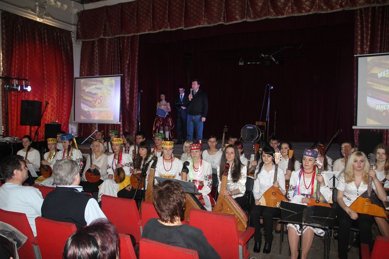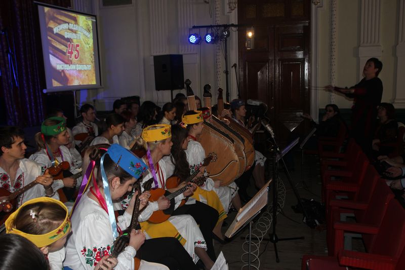 Кульмінацією свята став феєричний концерт, який відбувся в актовій залі університету. Приємно, що концерт відвідали не лише люди, які сьогодні своїми творчими силами, життєвою енергією, ентузіазмом розбудовують факультет, а й гості з інших факультетів, колишні випускники, колеги. Бо сорокап’ятиріччя – то довгий життєвий період, під час якого зароджувалися нові музичні династії, виростали, як квіти, творчі здобутки, формувалася справжня школа викладачів. То – безмежний відрізок часу, у якому сплелися докупи перемоги й поразки, перші наївні кроки, бурхливе студентське життя, численні невивчені пари, пізнавальні лекції, підготовки до «Вернісажів талантів» і різноманітних розважальних заходів.