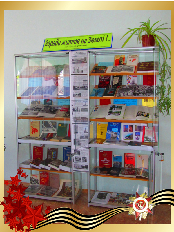До цієї визначної дати універсальний читальний зал презентує виставку «Заради життя на Землі!» Світлі й трагічні сторінки тих полум'яних років розкриваються в рубриках: