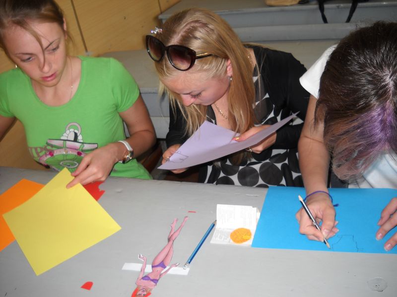 Тож, як виявилось господині гарні всі, а от чи зможуть дівчата в екстреному випадку допомогти своїй другій половинці швидко зібратись – це вже питання. Отож, завданням конкурсу було знайти якомога більшу кількість пар шкарпеток (матеріал – кольоровий картон) відповідного кольору. І знову це завдання виконали чудово.