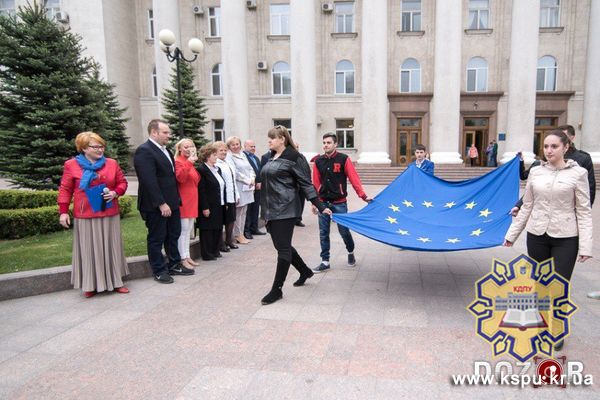 Вчора, 11 травня, студенти Центральноукраїнського державного педагогічного університету імені Володимира Винниченка долучилися до урочистостей підняття прапорів України та Європейського союзу на площі Героїв Майдану та на площі перед будинком міської ради з нагоди ухвалення рішення Радою міністрів Європейського Союзу щодо скасування візових вимог для громадян України та відзначення Дня Європи.