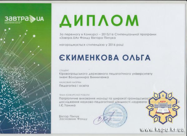 Всеукраїнська благодійна організація «Фонд Віктора Пінчука – соціальна ініціатива» в рамках реалізації благодійної програми «Стипендіальна програма «Завтра.UA» багато років поспіль проводить відкритий конкурс для добору найбільш обдарованих і цілеспрямованих студентів провідних вищих навчальних закладів (ВНЗ) України.
