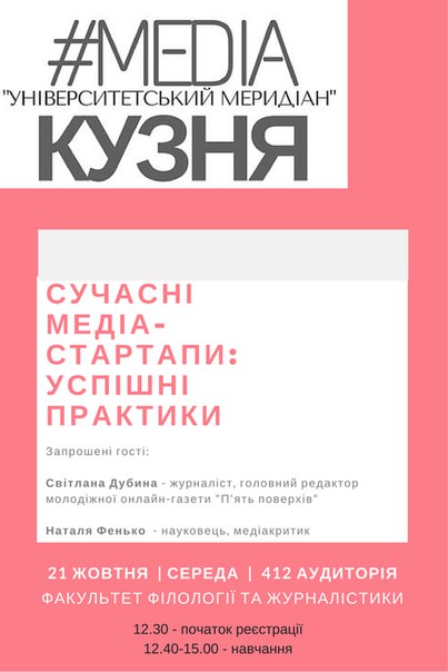 (п´ятиповерховий корпус). Пропонуємо усім бажаючим розширити свій кругозір у темі сучасних медіа.