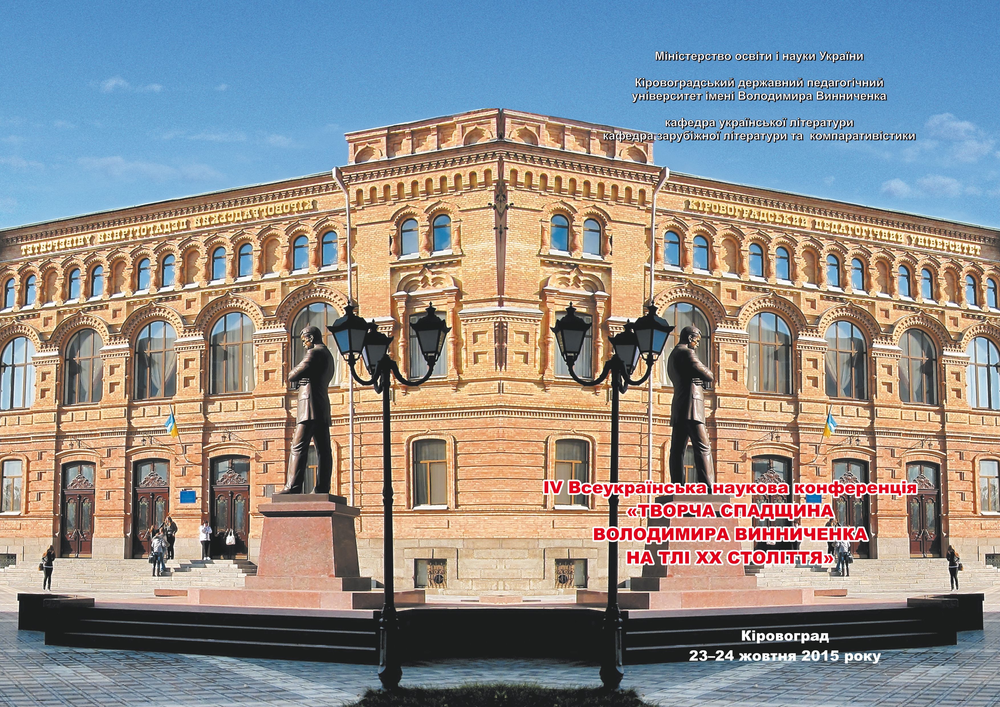 23-24 жовтня 2015 року відбудеться ІV Всеукраїнська науково-практична конференція “Творча спадщина Володимира Винниченка на тлі ХХ століття”.