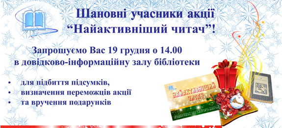 15-16 грудня в приміщенні наукової бібліотеки відбудеться перегляд нових надходжень літератури з таких дисциплін: суспільно-політична література, природничі науки: математика, фізика, науки про Землю, хімія, біологія; історія, юридичні науки, педагогіка, психологія, засоби масової інформації, мовознавство, літературознавство, художня література. Бажаючих переглянути нові надходження запрошуємо до довідково-інформаційного залу.