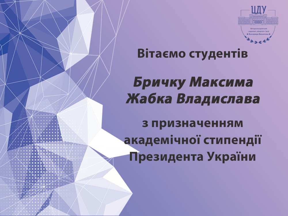 Студенти Центральноукраїнського державного університету імені Володимира Винниченка, які демонструють високі результати у навчанні і науковій діяльності, — вже традиційно серед стипендіатів Президента та Верховної Ради України!