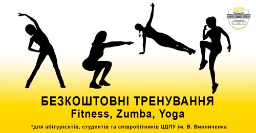 Ректорат та Молодіжний центр ЦДПУ ім.В.Винниченка, запрошують абітурієнтів, студентів та співробітників університету на БЕЗКОШТОВНІ заняття з фітнесу, зумби та йоги.
