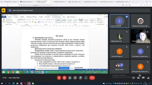 Леськів Ірина Олександрівна проходила педагогічну практику у КЗ «НВО №32 «Спеціалізована загальноосвітня школа І–ІІІ ступенів, позашкільний центр «Школа мистецтв» Кіровоградської міської ради Кіровоградської області». У ході доповіді І.О.Леськів продемонструвала позакласний захід, який провела у вигляді ігрової мандрівки Колумба «Ми готові у дорогу», представила візуальні матеріали та схарактеризувала зміст завдань позакласного заходу: