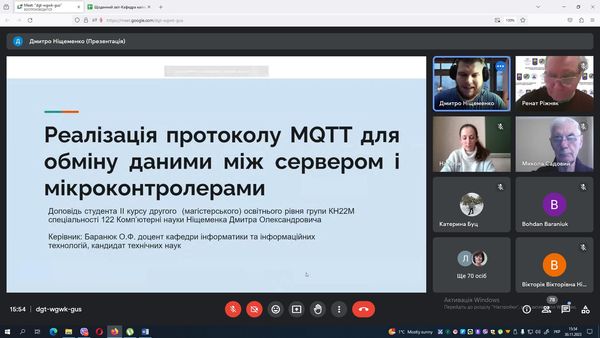 Ніщеменко Дмитро – «Впровадження протоколу MQTT для обміну даними між сервером і мікроконтролерами»