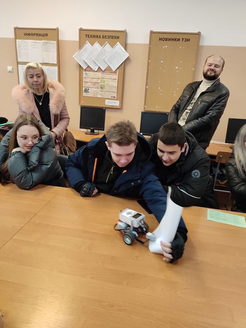 Студент групи Професійна освіта (Цифрові технології) ЦТ20Б Павлюк Денис поділився своїми знаннями в галузі цифрових технологій та надав учням унікальну можливість власноруч керувати роботами за допомогою світла. На заході, що відбувся, слухачі мали можливість допомогти пройти роботу лабіринт, використовуючи перешкоди для зміни напрямку руху робота, що для їх індикації та навігації застосовував ультразвуковий датчик відстані. Це не лише викликало зацікавленість, але і дозволило учням зануритися в захопливий світ робототехніки та експериментувати із застосуванням новітніх технологій.