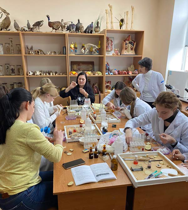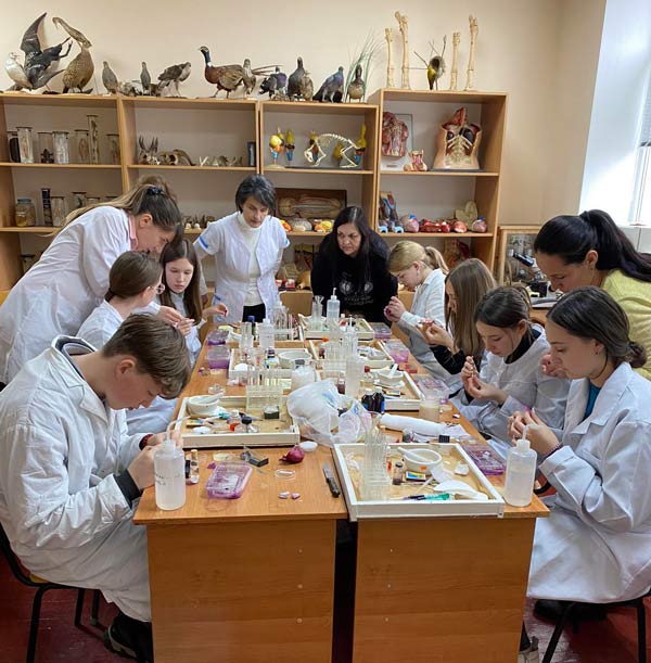 Г.Ф. Аркушина провела теоретичні заняття з учнями в дистанційному форматі, а М.С. Боброва організувала дводенний практичний тренінг на базі біологічної лабораторії кафедри, під час якого учні опанували методики препарування та мікроскопії, навчилися виготовляти і досліджувати тимчасові препарати клітин і тканин, здійснили лабораторні досліди і проаналізували отримані результати.