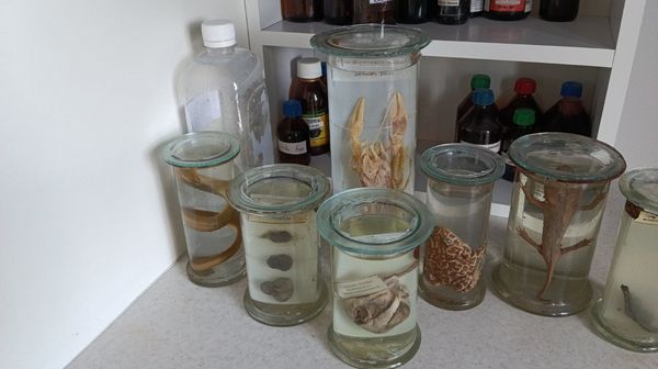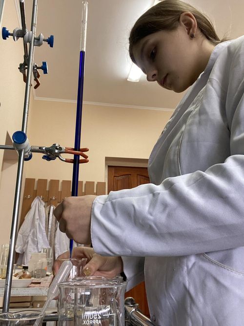 Потапчук Сабіна, вивчаючи різноманітність фіксувальних гістологічних розчинів, поповнює матеріальну базу кафедри вологими гістопрепаратами.