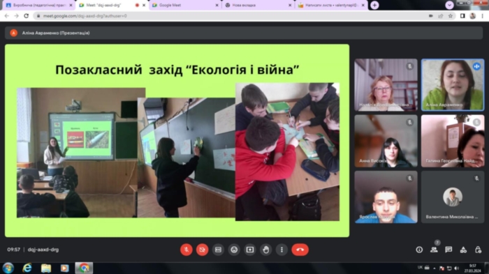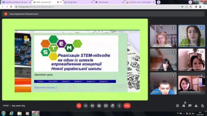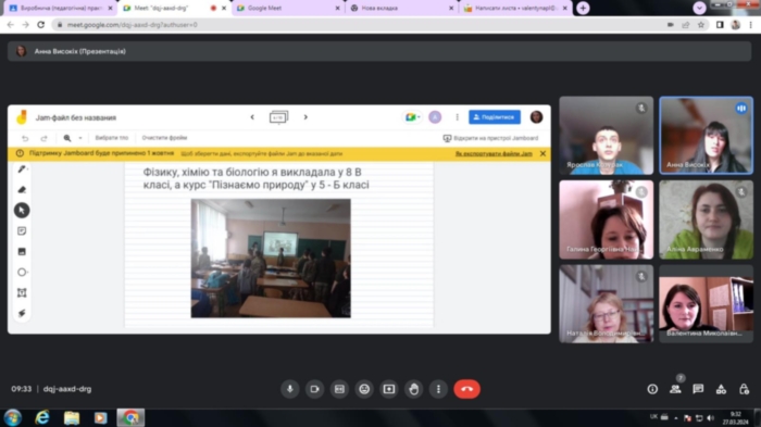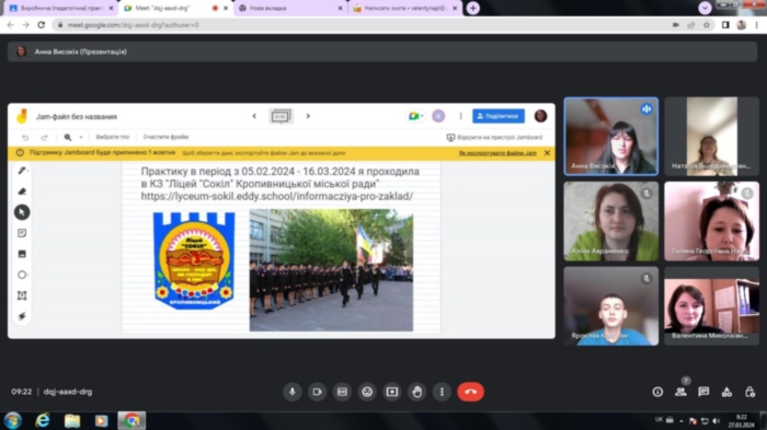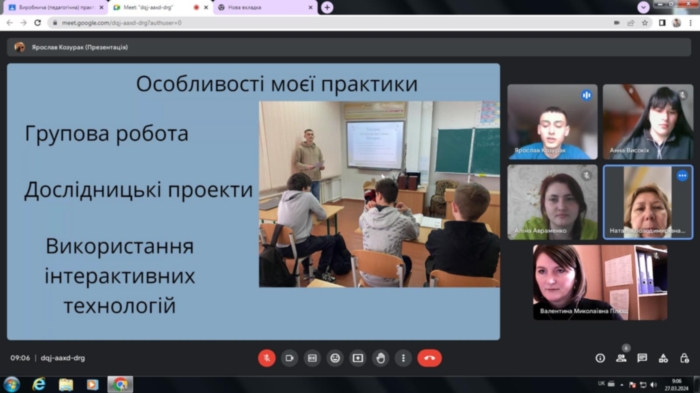 Під час конференції здобувачі ділились враженнями щодо першого досвіду професійної діяльності, продемонстрували інструменти й інноваційні методи, які використовували під час розробки конспектів уроків, виховних заходів. Під час практики також реалізовувалась практична складова курсової роботи з методики навчання природничих наук.