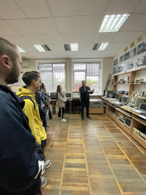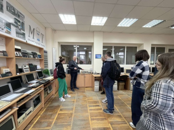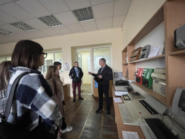 Екскурсію провів доктор історичних наук, професор Ренат Ріжняк, який розповів відвідувачам цікаві факти з історії створення абаку, калькуляторів, персональних комп’ютерів, ноутбуків, принтерів, ігрових приставок та іншої техніки. Студенти захоплено слухали, активно задавали питання, обговорювали почуте.