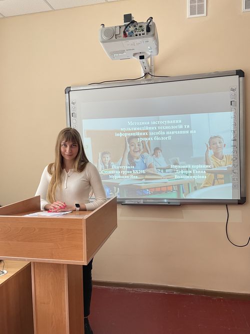 Базою проведення досліджень були заклади загальної середньої освіти м. Кропивницького та Кіровоградської області. Так, Муровщик Яна розкрила особливості застосування мультимедійних технологій та інформаційних засобів навчання на уроках біології. Микитяк Аня окреслила методику організації позакласної роботи з біології, а Твердоступ Вікторія – методику формування пізнавального інтересу учнів в процесі вивчення біології. Приходько Катерина захопливо розповіла про формування практичних навичок при вивченні теми «Перша домедична допомога». Дослідження Новікової Єлизавети було присвячене практично-орієнтованому навчанню, яке вона реалізувала при викладанні теми «Сенсорні системи». Всі студенти зазначили, що написання курсової роботи не викликало особливих труднощів, вони із задоволенням працювали над практичною частиною, яка включала безпосередню роботу зі школярами. Комісія відмітила високий рівень виконання курсових проєктів, звернула увагу на наявність сертифікатів проходження вебінарів та семінарів на освітніх платформах, пов’язаних з тематикою курсових робіт, та рекомендувала найкращим студентам подати матеріали для апробації на конференції та в наукові журнали.