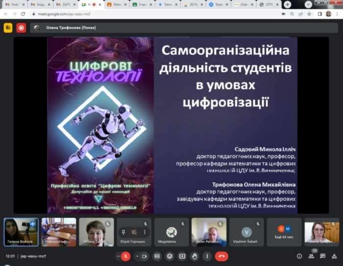 21 травня 2024 року відбулося пленарне засідання міжнародної науково-практичної конференції «Сучасна наука та освіта : новітня соціокультурна проекція», співорганізаторами та учасниками якої стали науково-педагогічні працівники кафедри математики та цифрових технологій нашого університету: зав.кафедри О.М.Трифонова та професор кафедри М.І.Садовий.