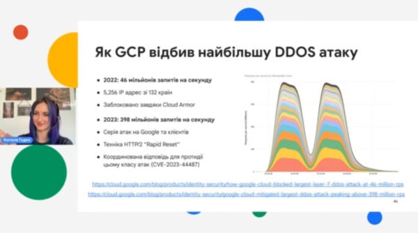 Крім того, важливим аспектом конференції була тема кібербезпеки. Студент дізнався про сучасні загрози в цифровому середовищі та про заходи безпеки, які Google Cloud впроваджує для захисту даних користувачів. Було підкреслено важливість багаторівневої системи безпеки, яка включає шифрування даних, автентифікацію та регулярний моніторинг активності.