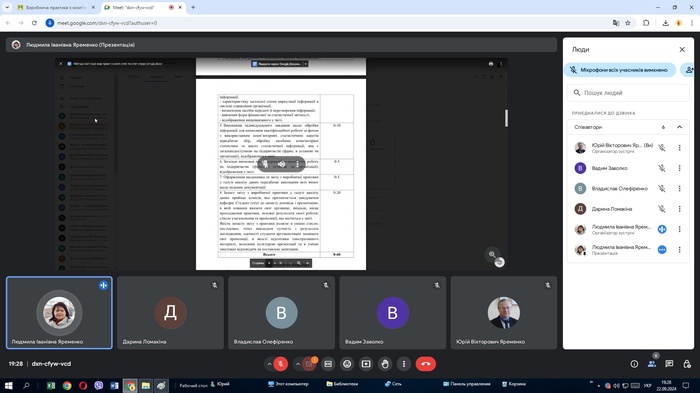 Керівник практики к.фіз-мат.н., доцент кафедри математики та цифрових технологій Юрій Яременко, привітав студентів з початком практики, провів інструктаж з техніки безпеки та детально окреслив завдання практики. Доцент кафедри, к.пед.н. Людмила Яременко акцентувала увагу на складні умови проходження практики під час воєнного стану, вшанування памʼяті всіх українців, які загинули на війні, о 9 годині ранку та на необхідності проходження додаткового інструктажу з техніки безпеки на підприємстві (у організації чи установі). Фахові методисти також розповіли студентам методичну систему оцінювання їх роботи на виробничій практиці, призначення балів за кожен вид діяльності