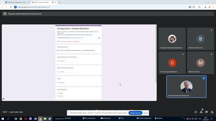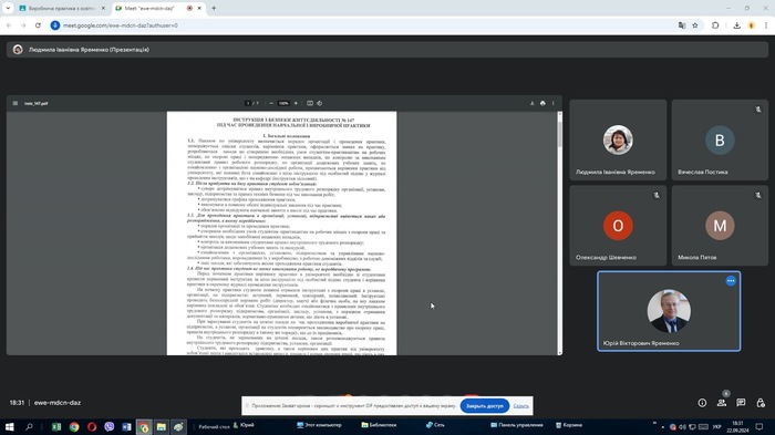 Керівник практики к.фіз-мат.н., доцент кафедри математики та цифрових технологій Юрій Яременко, привітав студентів з початком практики, провів інструктаж з техніки безпеки та детально окреслив завдання практики.