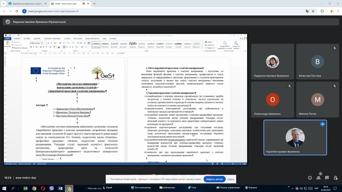 З 23 вересня 2024 року розпочалася виробнича практика студентів другого (магістерського) рівня вищої освіти спеціальності 011 Освітні, педагогічні науки освітньої програми «Освітні, педагогічні науки (Освітні вимірювання. Гендерні студії: науковий аспект)» з освітніх вимірювань. Перш за все, метою виробничої практики з освітніх вимірювань є підготовка майбутніх спеціалістів до виконання функцій фахівця з освітніх вимірювань, професіонала в галузі інформації та інформаційного аналітика, формування у студентів-практикантів досвіду досліджень у науках про освіту, освітніх вимірювань.