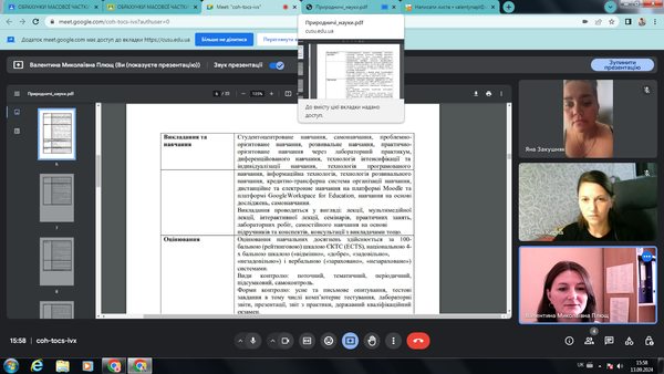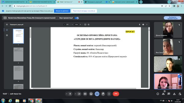 Зібрана інформація під час обговорення буде врахована під час удосконалення змісту підготовки здобувачів освіти першого (бакалаврського) рівня вищої освіти за освітньою програмою «Середня освіта (Природничі науки)».
