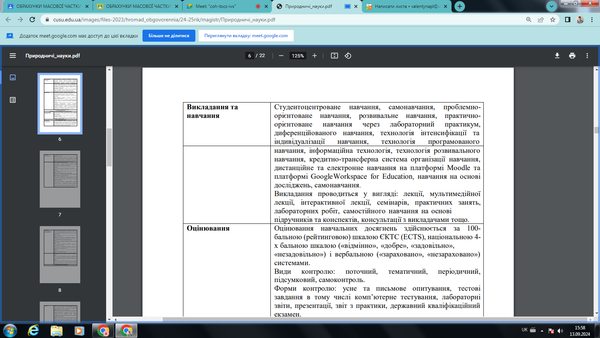 Обговорення ОП Середня освіта (Природничі науки) першого (бакалаврського) рівня вищої освіти