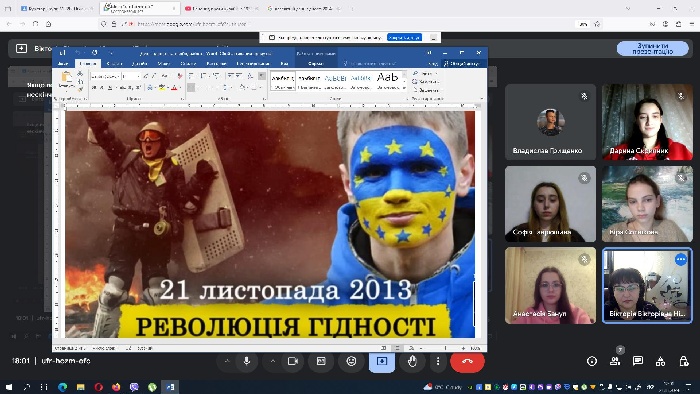 Студенти кафедри математики та цифрових технологій факультету математики, природничих наук та технологій, зокрема, студенти групи МІ22Б спеціальності 014 Середня освіта (Математика) обговорили як і чому відбулися ці події. А саме: що відзначають у День гідності та свободи?