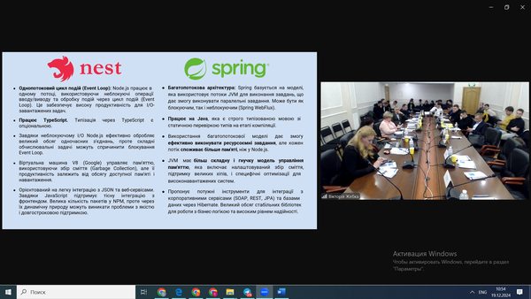Представниками кафедри стали: доцент Присяжнюк О.В. та доцент Пузікова А.В. (використання ChatGPT для розпізнавання відповідей респондентів у соціальних опитуваннях), доцент Шлянчак С.О. (ізоморфізм графів та розв’язок проблеми за допомогою нейронних мереж), викладач Ганенко Л.Д. (застосування ROS для розробки робототехнічних систем), які долучилися онлайн, та викладач Ніщеменко Д.О., який очно виступив на конференції. Ніщеменко Д.О. презентував результати свого дослідження щодо реалізації механізмів зберігання та управління даними в Інтернеті речей на базі фреймворку JAVA SPRING.