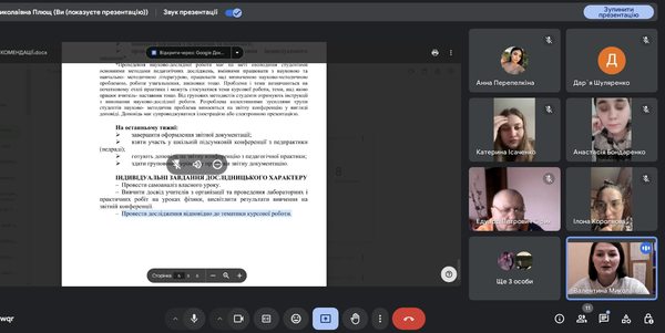 Настановча конференція до виробничої практики проведена 3 лютого 2025 року, під час якої керівник практики (В.М.Плющ) та методисти (Е.П.Сірик, Г.Г.Найдьонова, О.І.Бабак та Т.О.Кравцова) ознайомили здобувачів з програмою практики, метою, завданнями, змістом діяльності студента практиканта з фаху, педагогіки та психології та критеріями оцінювання. У створених класрумах розміщена вся необхідна інформація для здобувачів освіти .