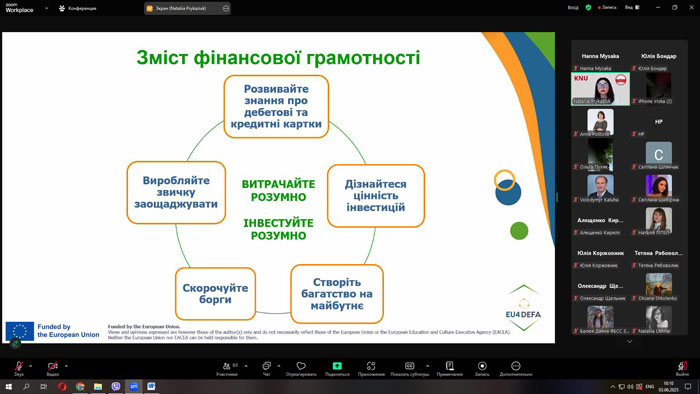 Професорсько-викладацький склад та здобувачі вищої освіти кафедри менеджменту та підприємництва ЦДУ імені В. Винниченка – учасники Літньої онлайн-школи EU4DEFA 1.0