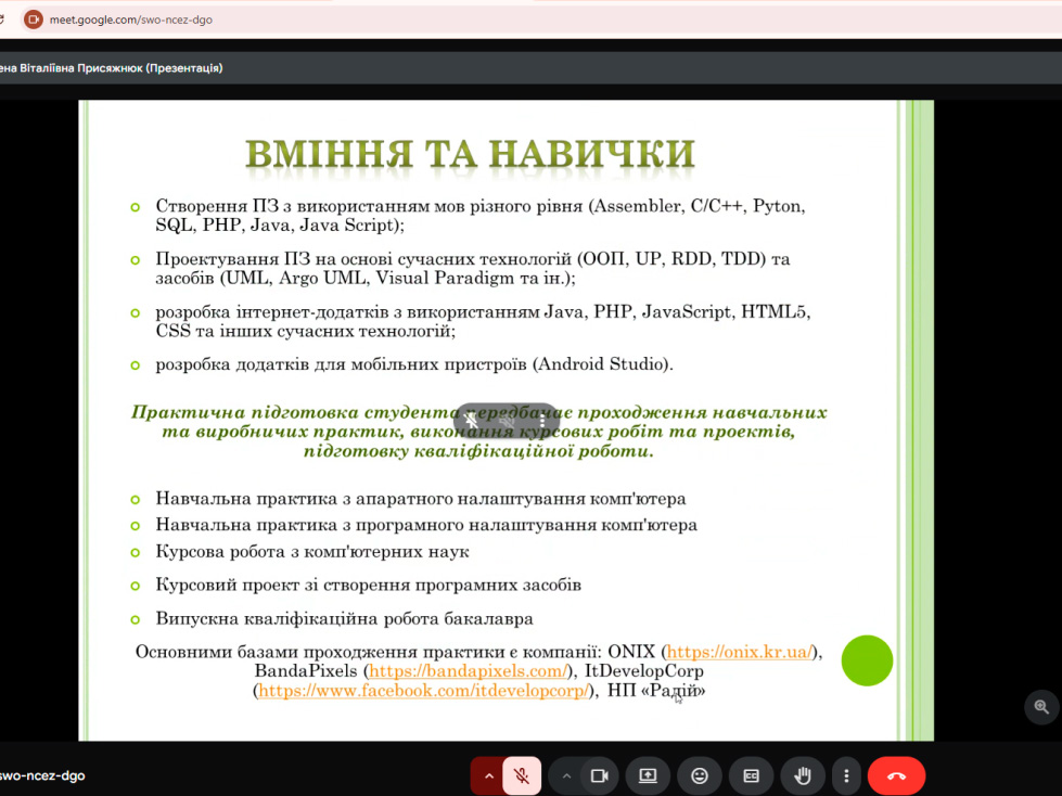 У понеділок, 26 травня викладачі кафедри інформатики, програмування, штучного інтелекту та технологічної освіти з метою популяризації ІТ-спеціальностей серед старшокласників провели онлайн зустріч з учнями 10-11 класів Знам’янської загальноосвітньої школи І-ІІІ ступенів № 6 Знам’янської міської ради Кіровоградської області.