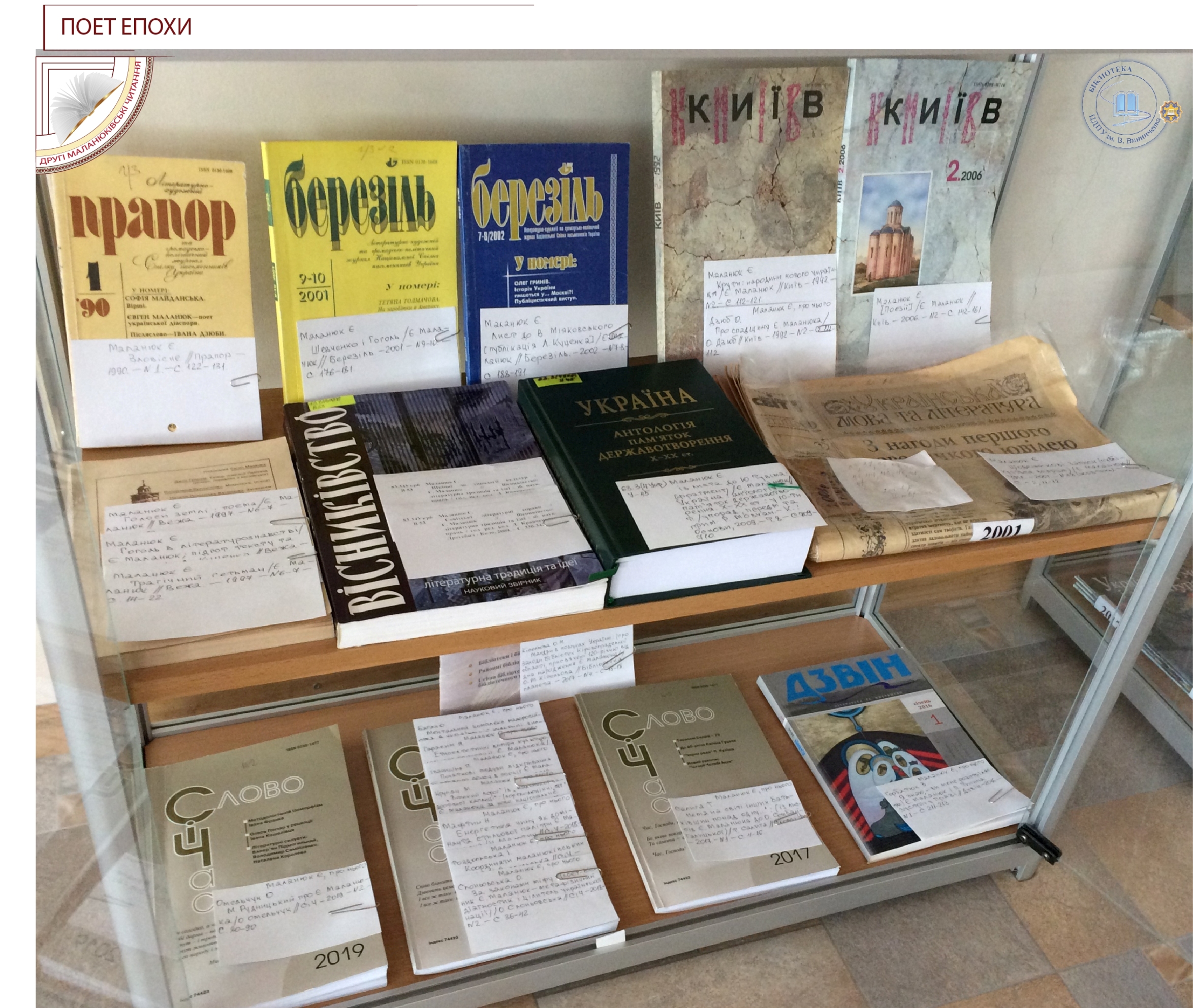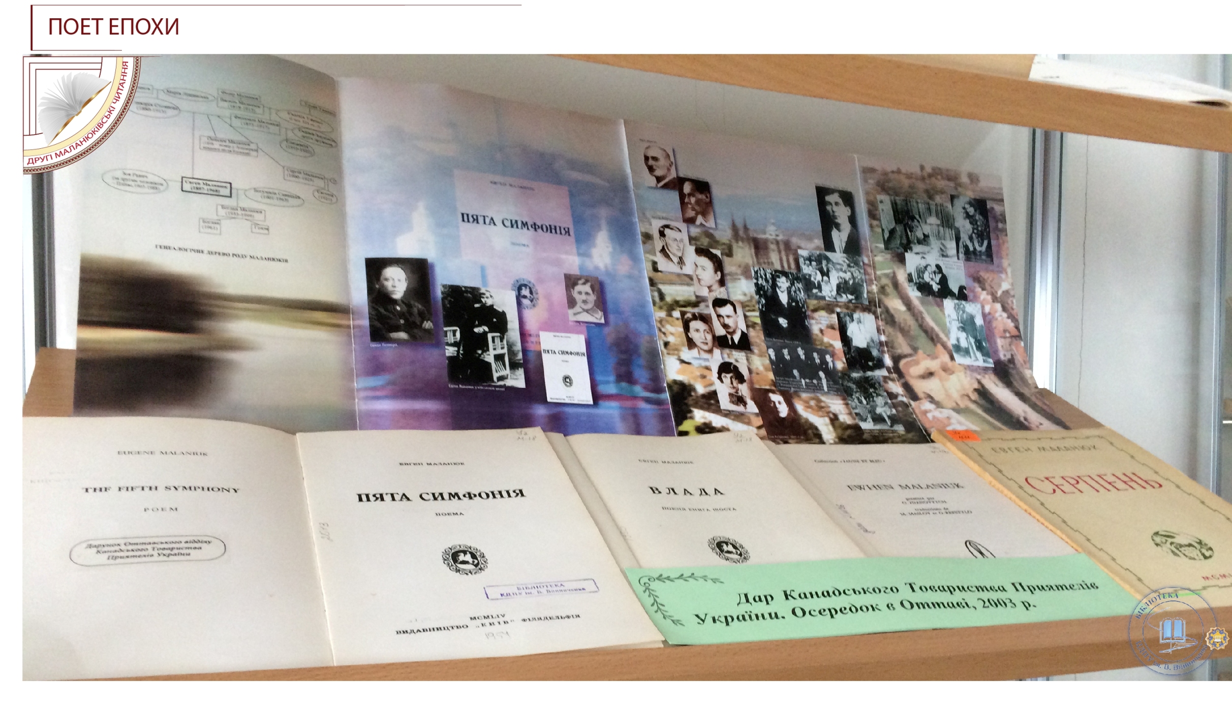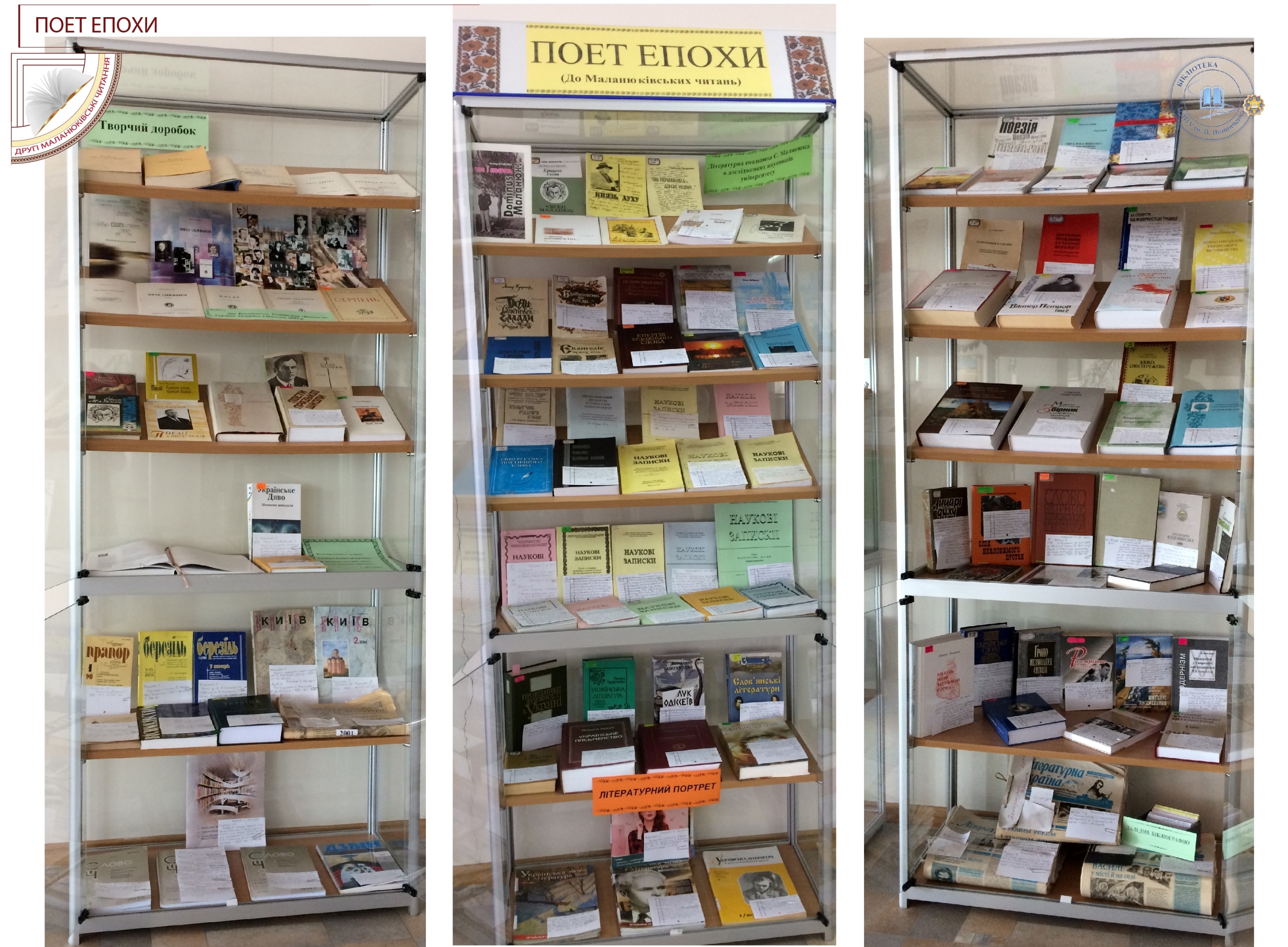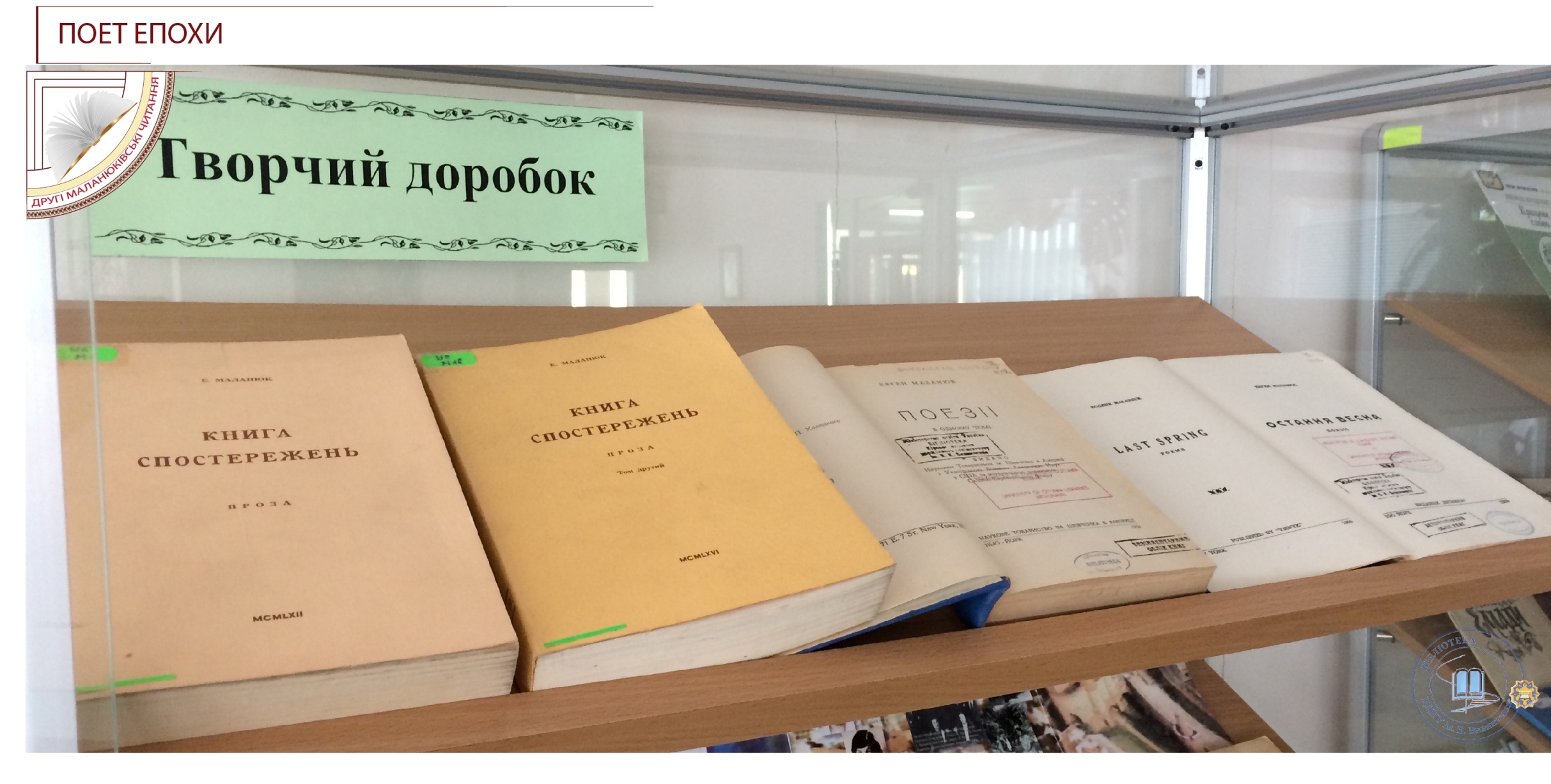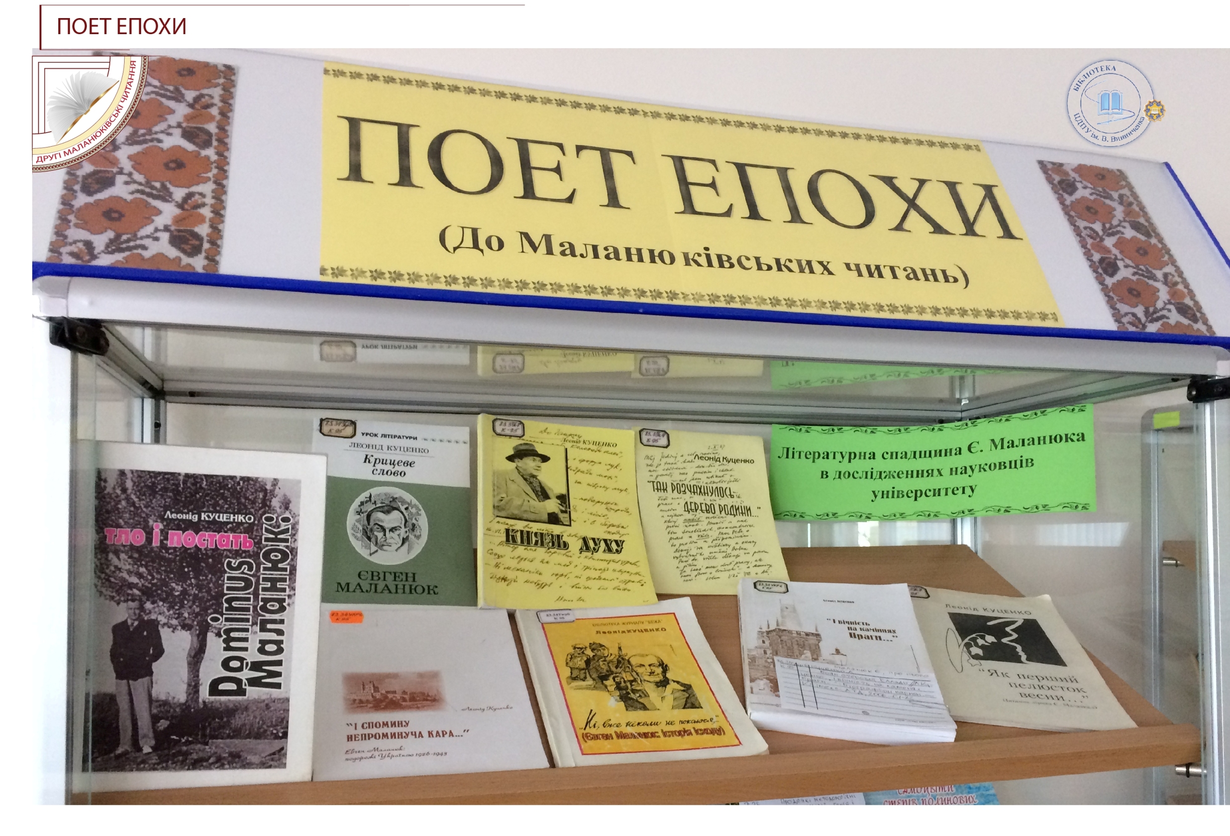 На зламі ХХ-ХХІ століть ім'я українського поета, літературознавця, критика маловідоме широкому загалу читачів. Мета виставки – долучити поціновувачів української літератури до вершинних творів Є. Маланюка, першодруків листів та щоденникових записів. Рубрики експозиції знайомлять читачів з дослідженнями його спадщини науковцями нашого університету та літературознавчими оглядами знаних українських критиків.