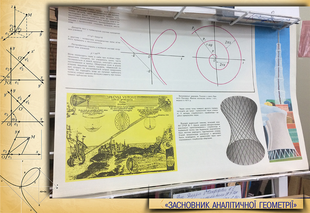 Декарт запровадив систему координат, дав поняття змінної величини і функції, ввів багато алгебраїчних позначень, які ми використовуємо і до цього дня, став “батьком“ аналітичної геометрії. Закладаючи її основи, учений вивів рівняння прямих і деяких конічних перерізів — кола, еліпса, параболи, гіперболи та висловив думку про можливість застосування методу координат у просторі, що здійснили у своїх роботах пізніші математики. І це далеко не всі досягнення.