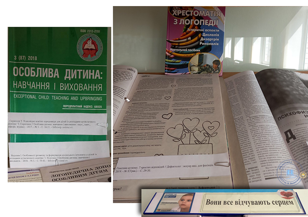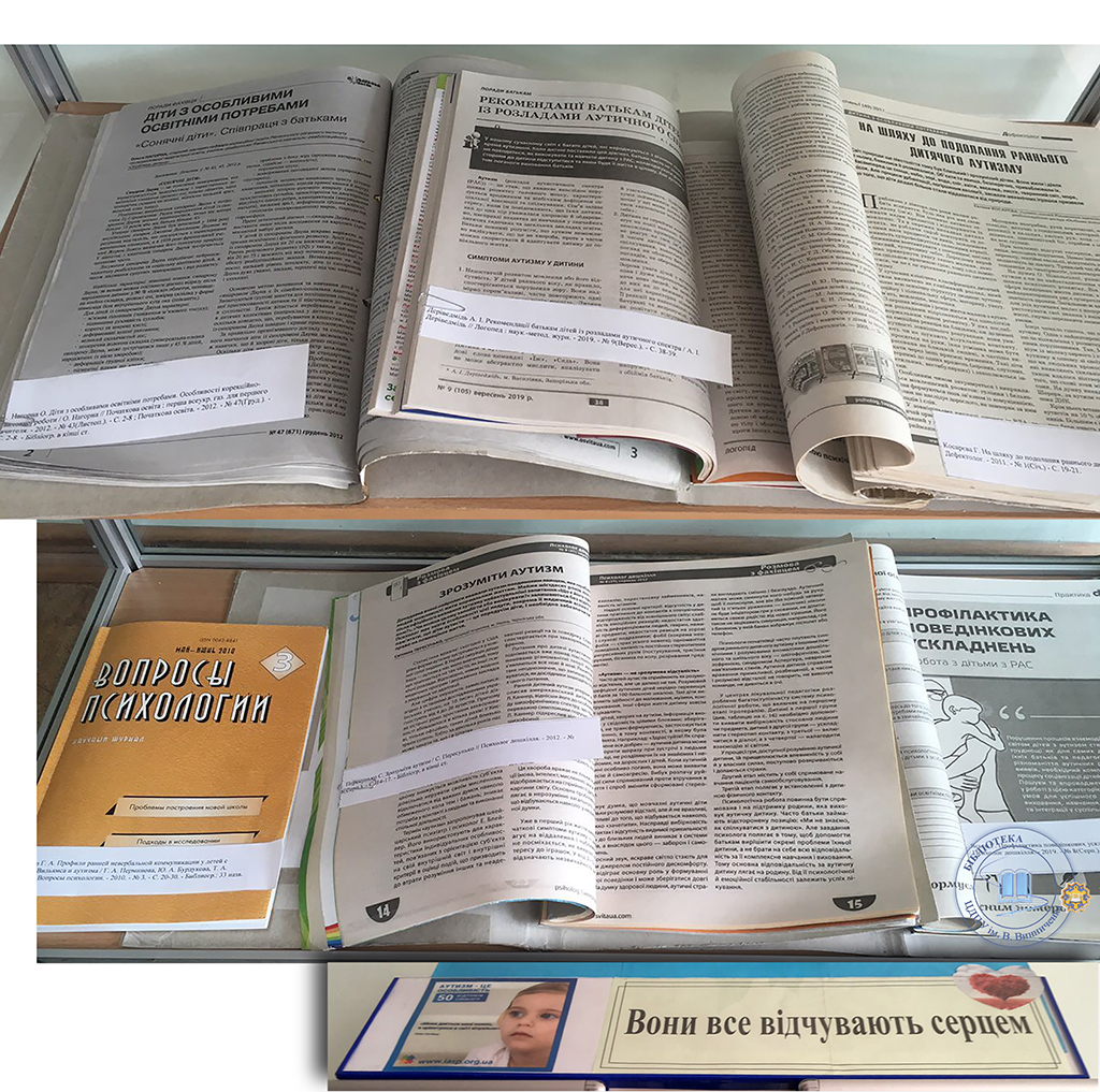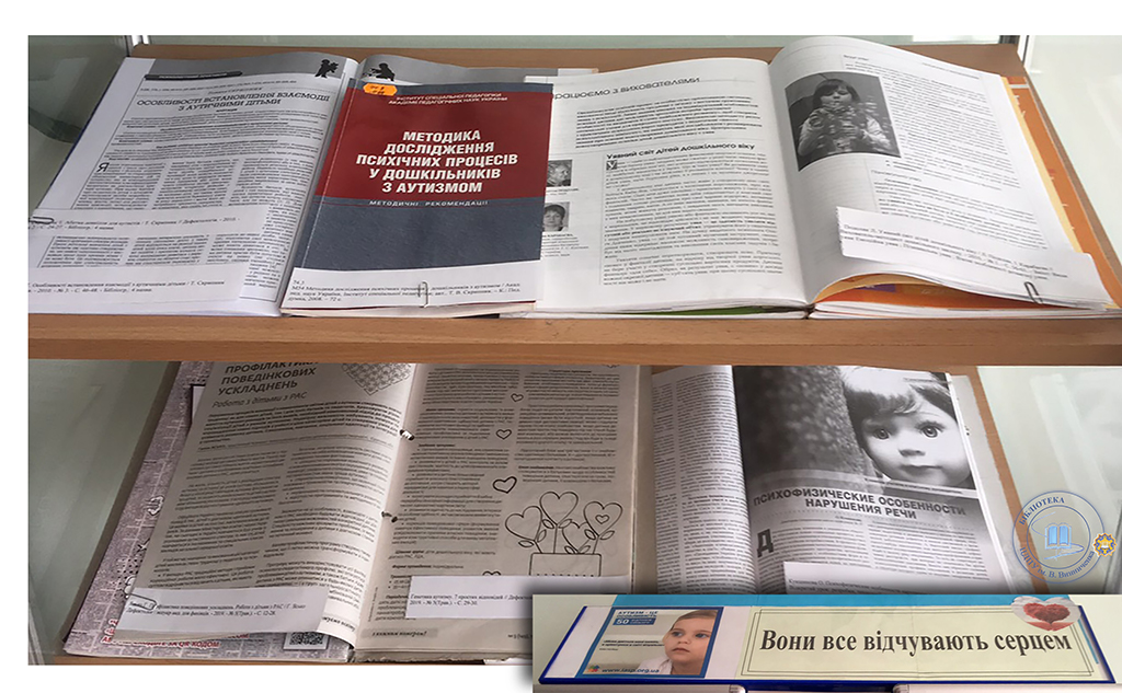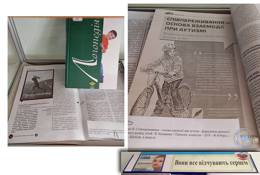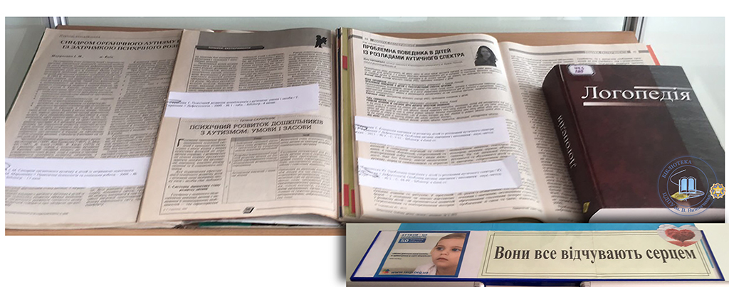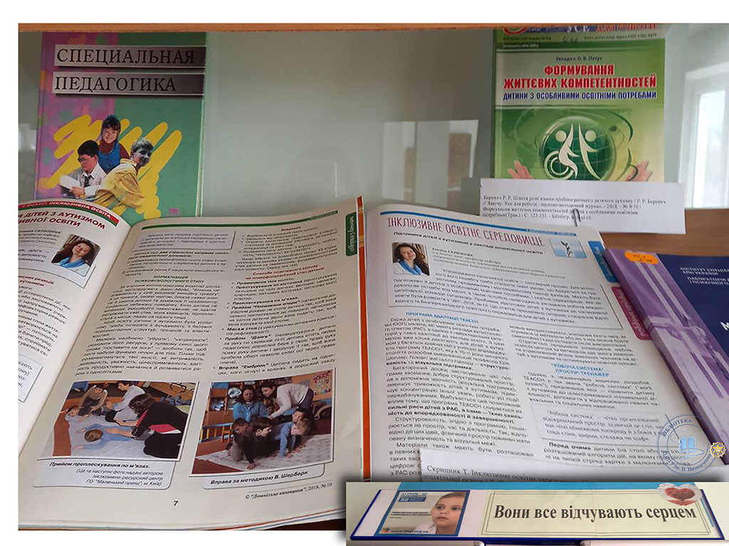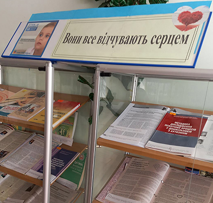 До уваги користувачів пропонується така література з фондів бібліотеки: практичні та методичні розробки, навчально-методичні посібники, історії аутичних дітей і досвід їх батьків.