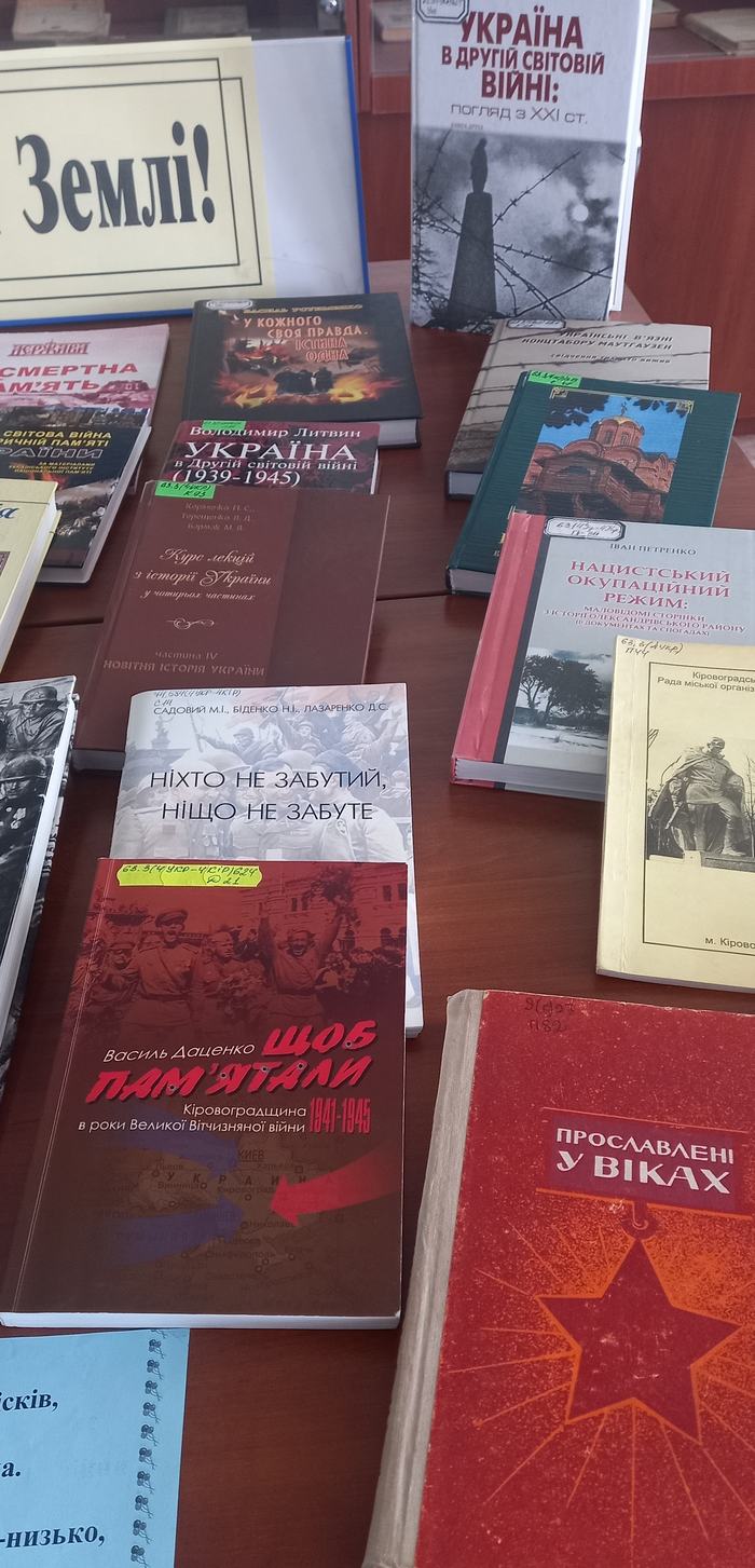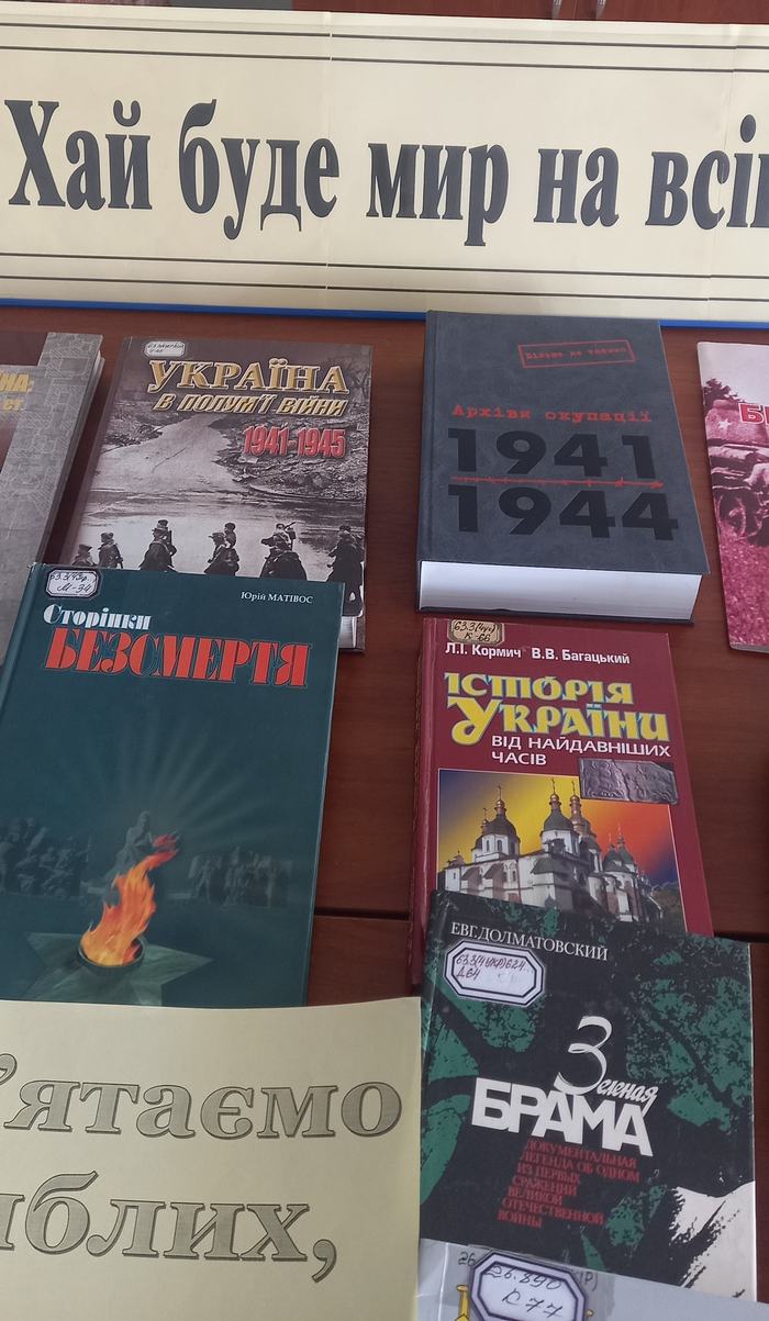 До Дня пам'яті та перемоги над нацизмом у Другій світовій війні бібліотека ЦДУ ім. В. Винниченка підготувала тематичну книжкову виставку «Хай буде мир на всій Землі».