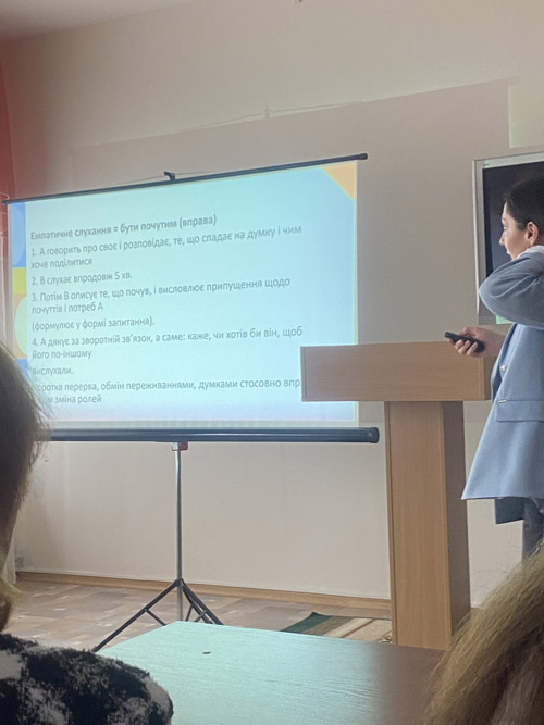 У бібліотеці ЦДУ імені Володимира Винниченка відбувся захід «Взаємодія в підтримці: комунікація з родинами захисників» за участі практичного психолога, клінічного психолога КНП «Обласний клінічний госпіталь ветеранів війни КОР», голови ГО КОМПАС Ганни Колєвої.