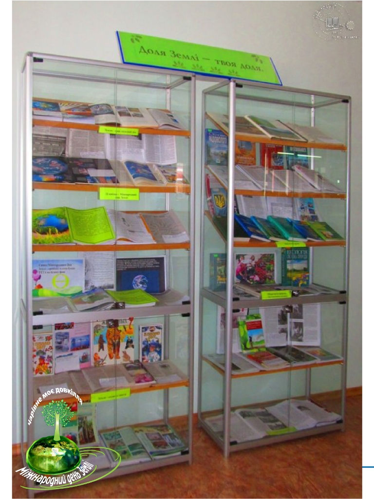 З великим задоволенням ліцеїсти прослухали коротку інформацію бібліотекаря щодо історії Дня Землі, отримали довідку про символіку, девіз, прапор цього дня, а також пройнялись проблемами навколишнього середовища нашої блакитно-зеленої планети. Наприкінці огляду на закріплення почутого був проведений ігровий конкурс у вигляді загадок на природничу тематику, який учні витримали з честю і вразили бібліотекарів своєю неабиякою обізнаністю.