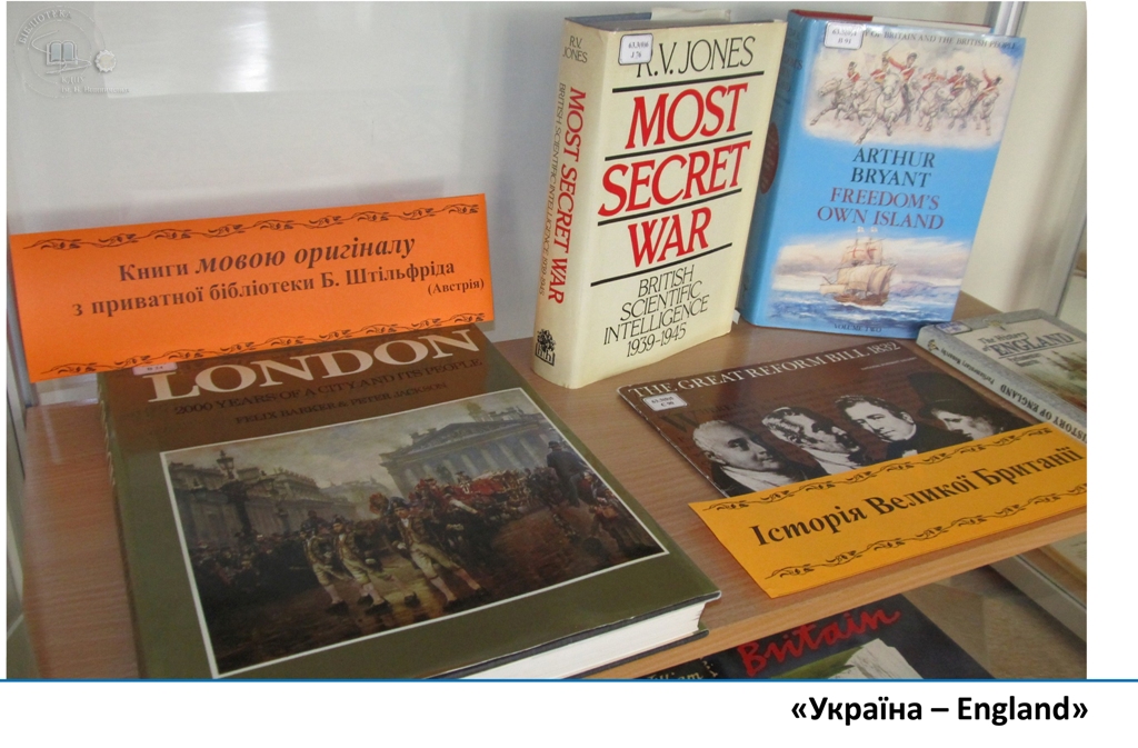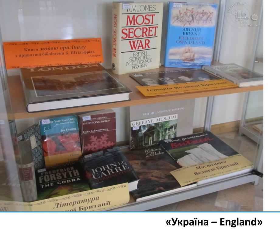 Рубрики виставки висвітлюють теорію і практику вивчення англійської мови і знайомлять з історією, літературою та мистецтвом Великої Британії. Читачі, які вже опанували англійську мову, мають нагоду переглянути лондонські видання мовою оригіналу з приватної бібліотеки Бернхарда Штільфріда (Австрія).