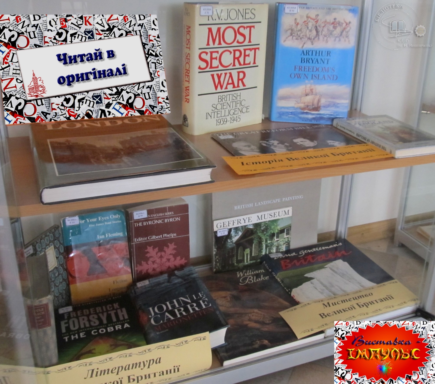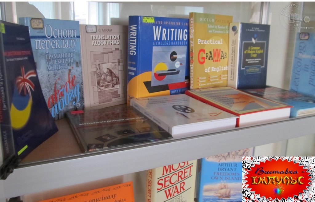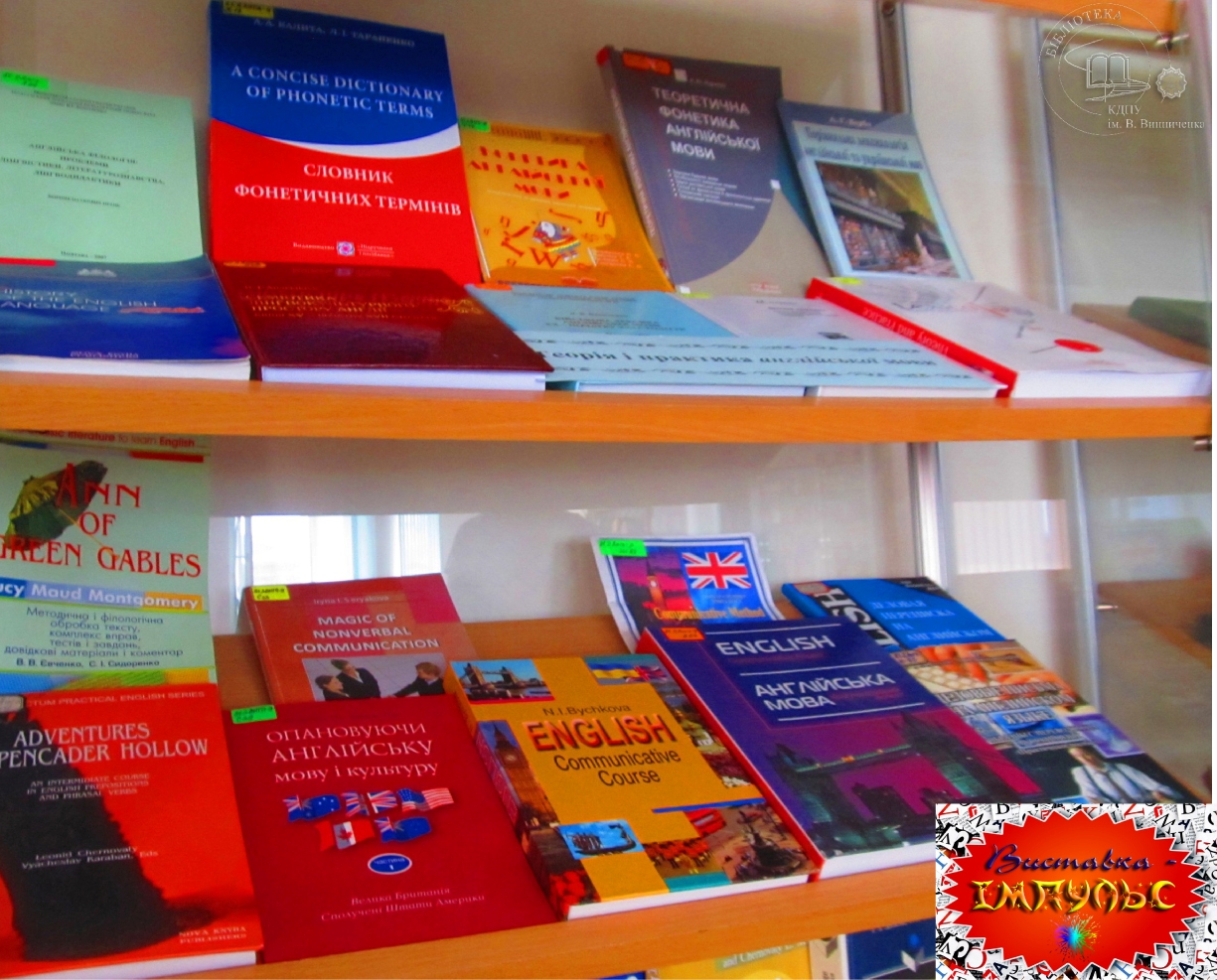 Шановні читачі! З нагоди Року англійської мови в Україні до вашої уваги пропонується тематична імпульс-виставка «Книжковий Біг Бен», яка експонується в читальному залі філологічних дисциплін бібліотеки університету. Експозиція спрямована на популяризацію вивчення англійської мови серед молоді. Знання англійської мови забезпечує доступ до світових освітніх і культурних можливостей.